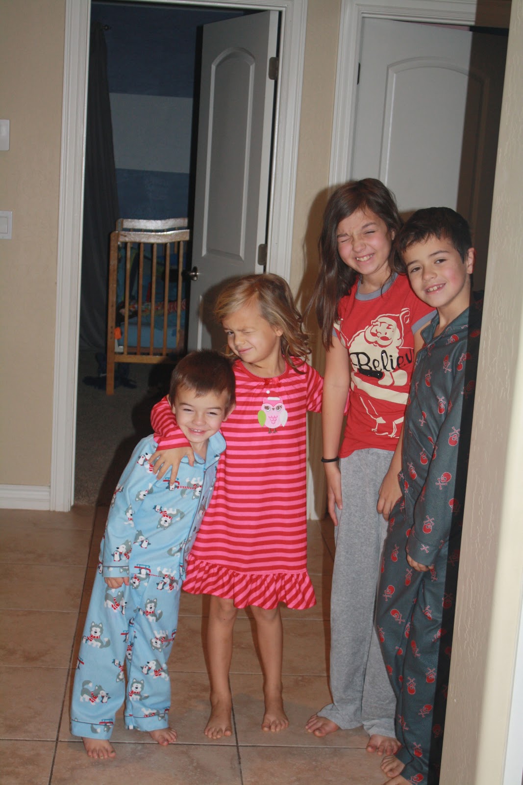 All the kids wanted to sleep together in Nate's room. It lasted until about 11:30 when I heard them up whispering if Santa had come.